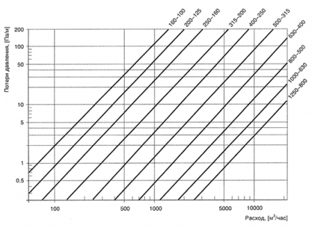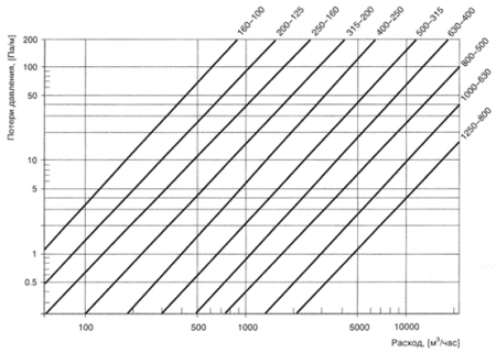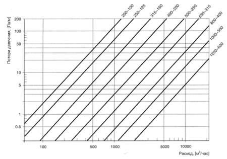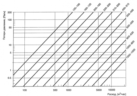Потери давления на круглых переходах Типа 1 рассчитываются по графикам